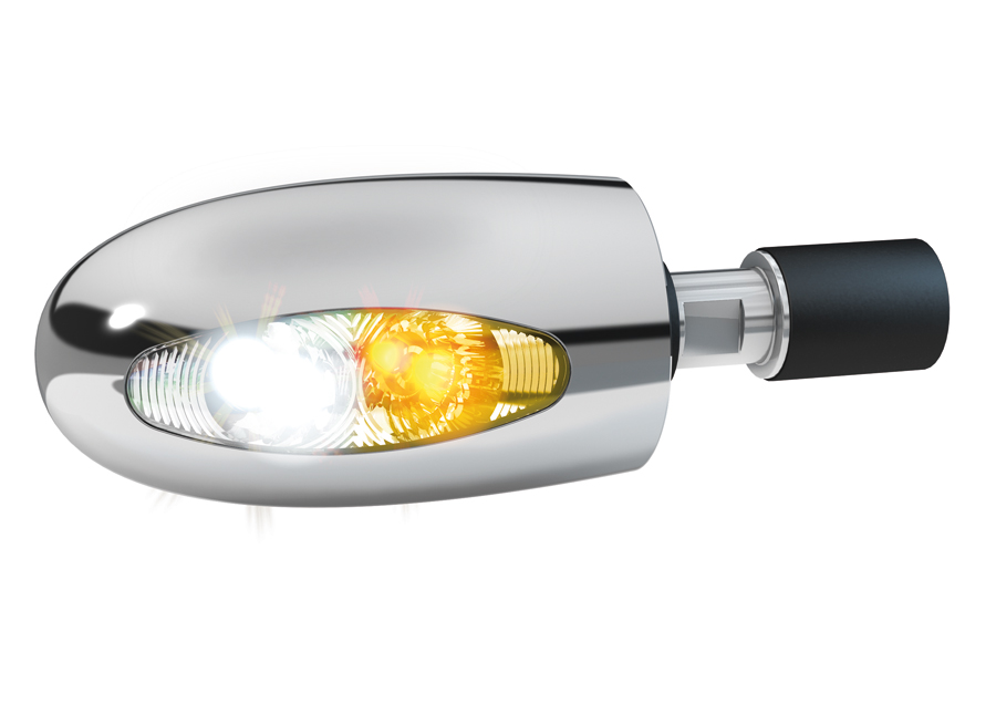 Der Blinker 1000 mit integrierter Positionsleuchte in Chromausführung.